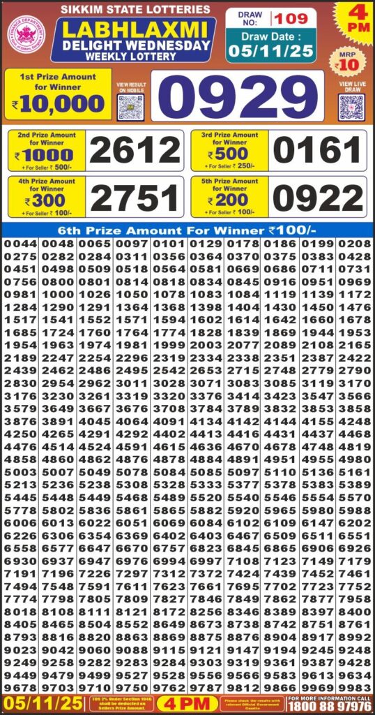 गोल्डन 100 मंथली लॉटरी रिजल्ट 05.11.25