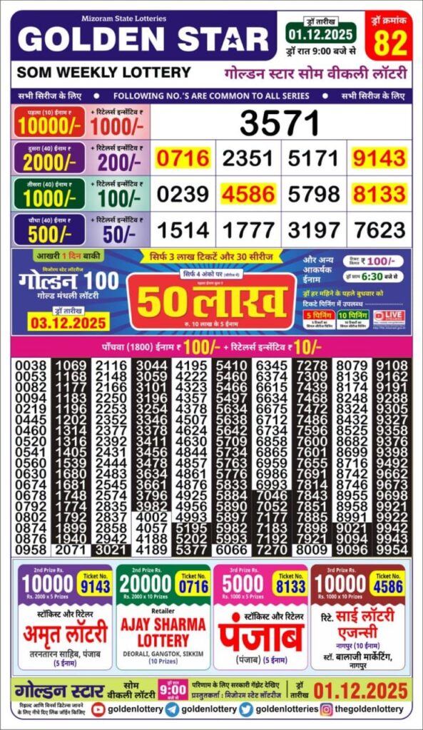 Nagaland State Dear Lottery Timetable Day 1PM Lottery 6PM Lottery 8PM Lottery Monday Dear Dwarka Morning Dear Desert Day Dear […]